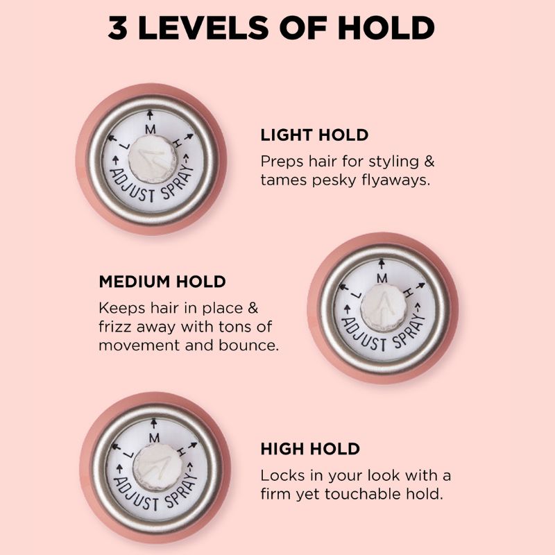 Light hold (2/10 hold level): Preps hair for styling & tames pesky flyaways. Also great for those with fine hair.