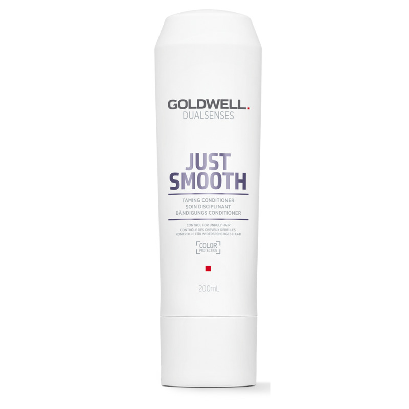 Tame frizz and flyaways effortlessly with the Goldwell Dualsenses Just Smooth Taming Conditioner. Designed for unruly and frizz-prone hair, this lightweight, nourishing formula instantly detangles and softens while enhancing manageability and shine.
