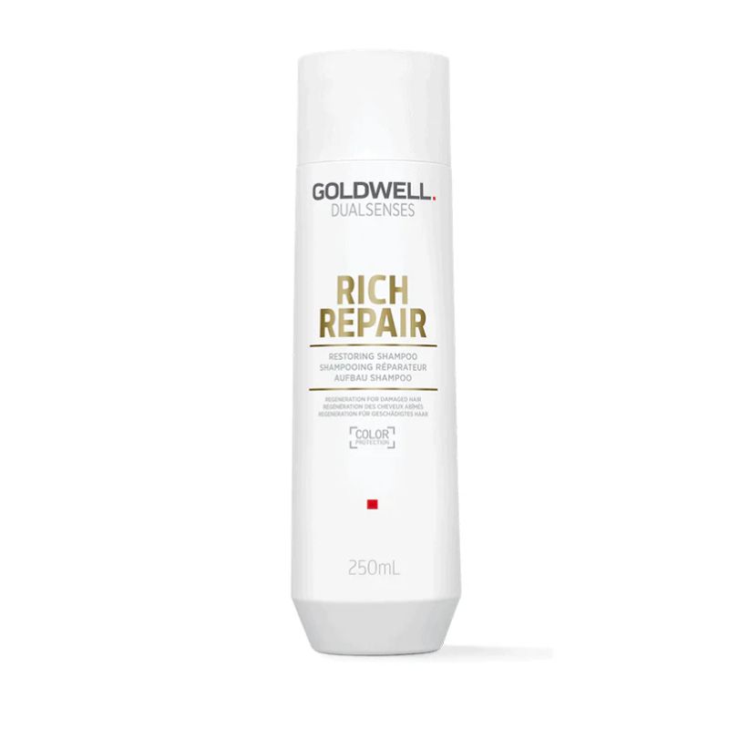 Goldwell Rich Repair Restore Shampoo 250ml is the essential professional solution for restoring strength, softness, and vitality to damaged hair — helping achieve healthier, stronger‑feeling strands with every wash.